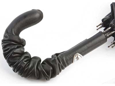 Жан Поль Готье — один из самых оригинальных и непредсказуемых модельеров. Его показы в Париже собирают огромное количество мировых знаменитостей. Зонт выполнен из тонкой "лайковой кожи", обработанной специальным составом. Кожаный зонт смотрится обалденно. Ну, извините, не нашел я другого слова.
