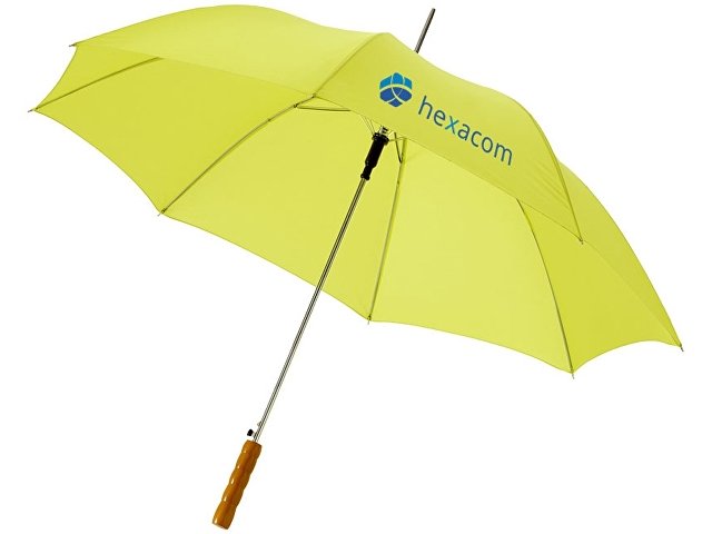 Полуавтоматический зонт Lisa 23". Зонт 23" с металлическими спицами, тростью и деревянной ручкой. Полиэстер. Трафаретная печать (1 цвет (цветные изделия)) на данный товар осуществляется бесплатно. Оплачивается только настройка оборудования в размере 3800 рублей на весь тираж.