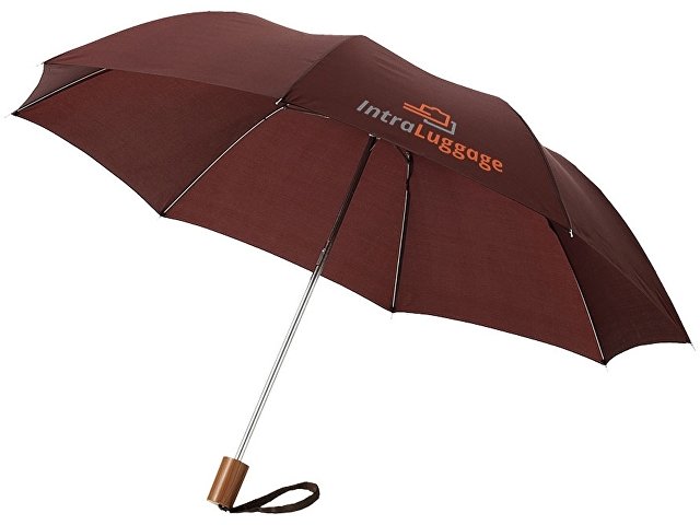 Зонт Oho двухсекционный 20". Зонт 20" двухсекционный с пластиковой ручкой и металлическими спицами. Чехол в комплекте. Полиэстер. Трафаретная печать (1 цвет (цветные изделия)) на данный товар осуществляется бесплатно. Оплачивается только настройка оборудования в размере 3800 рублей на весь тираж.