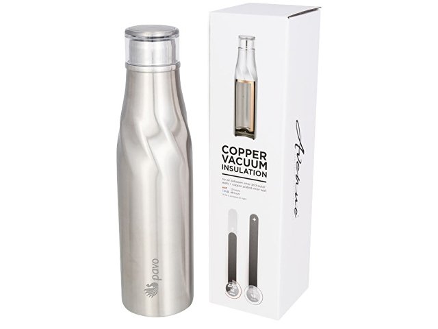 Вакуумная бутылка «Hugo», серебристый Гравировка (Без чернения) на данный товар осуществляется бесплатно. Оплачивается только настройка оборудования в размере 500 рублей на весь тираж.