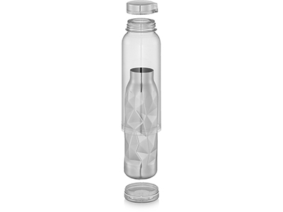 Бутылка с геометрическими фигурами. Внутренняя стенка из нержавеющей стали с геометрическими фигурами, наружная стенка из гладкого акрила для нанесения логотипа. Съемная внутренняя стенка из нержавеющей стали для удобной очистки или использования акриловой бутылки без вставки. Объем – 475 мл. Гравировка (Без чернения) на данный товар осуществляется бесплатно. Оплачивается только настройка оборудования в размере 500 рублей на весь тираж.