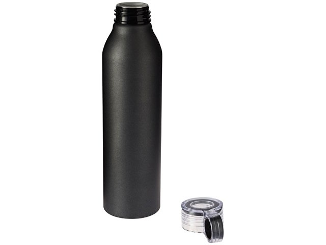 Спортивная алюминиевая бутылка Grom. Одинарные стенки. Откручивающаяся крышка с защитой от протекания и цветным акцентом. Удобная в пути. Объем 650 мл. Алюминий. Гравировка (Без чернения) на данный товар осуществляется бесплатно. Оплачивается только настройка оборудования в размере 500 рублей на весь тираж.