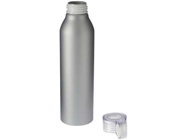 Спортивная алюминиевая бутылка Grom. Одинарные стенки. Откручивающаяся крышка с защитой от протекания и цветным акцентом. Удобная в пути. Объем 650 мл. Алюминий. Гравировка (Без чернения) на данный товар осуществляется бесплатно. Оплачивается только настройка оборудования в размере 500 рублей на весь тираж.
