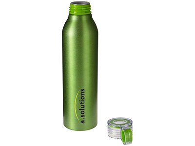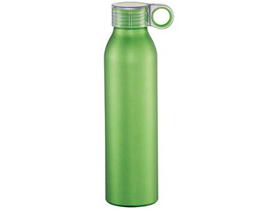 Спортивная алюминиевая бутылка Grom. Одинарные стенки. Откручивающаяся крышка с защитой от протекания и цветным акцентом. Удобная в пути. Объем 650 мл. Алюминий. Гравировка (Без чернения) на данный товар осуществляется бесплатно. Оплачивается только настройка оборудования в размере 500 рублей на весь тираж.