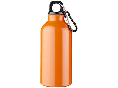 Бутылка для питья Oregon с карабином. Бутылка с одинарными стенками со съемной крышкой. Карабин не предназначен для лазанья. Объем – 400 мл. BPA Free Алюминий. Гравировка (Без чернения) на данный товар осуществляется бесплатно. Оплачивается только настройка оборудования в размере 500 рублей на весь тираж.