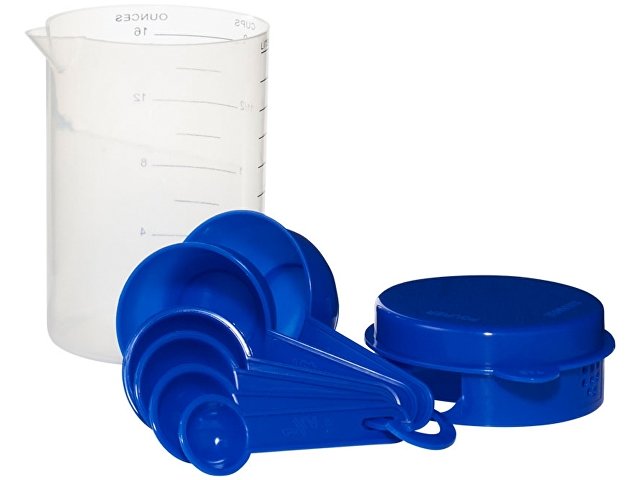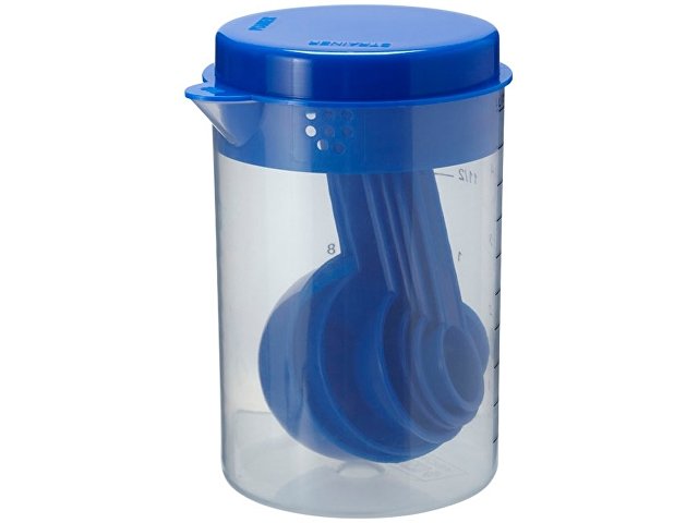 Измерительный набор из 7 предметов. Измерительный набор включает 0,5 литровый контейнер с крышкой, с опциями процеживания, наливания или закрытия контейнера. Внутри контейнера - мерные ложки. Полипропилен. Тампопечать (1 цвет (цветные изделия)) на данный товар осуществляется бесплатно. Оплачивается только настройка оборудования в размере 2300 рублей на весь тираж.