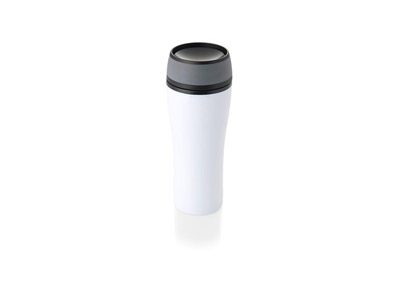 Герметичный термостакан Curve. Стакан для питья с двойными стенками с поворотной крышкой, позволяющая пить с любой стороны. Объем – 400 мл. Тампопечать (1 цвет (белые изделия)) на данный товар осуществляется бесплатно. Оплачивается только настройка оборудования в размере 2300 рублей на весь тираж.