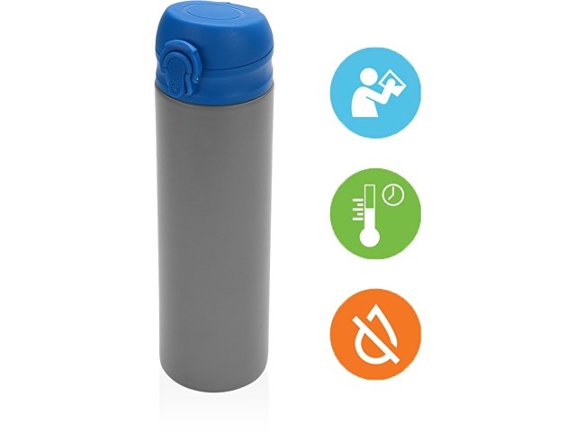 Термокружка «Хот» объемом 470 мл имеет двухстенную конструкцию из нержавеющей стали и крышку из пластика. Она сохранит температуру любого вашего напитка в течение 6 часов. Крышка надежно фиксируется с помощью кнопки. Также емкость для питья оснащена специальной мягкой удобной поилкой, которая не даст напитку пролиться. Благодаря своей универсальности термокружку можно использовать, как в офисе, так и дома. Гравировка (Без чернения) на данный товар осуществляется бесплатно. Оплачивается только настройка оборудования в размере 500 рублей на весь тираж.