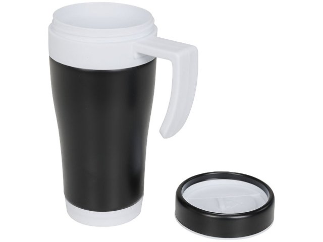 Кружка-термос Cayo 400 мл. Кружка с двойными стенками со съемной крышкой и открывающимся отверстием для питья. Большой участок с черным покрытием для нанесения привлекательного оформления. Объем – 400 мл. ПП-пластик. Гравировка (Без чернения) на данный товар осуществляется бесплатно. Оплачивается только настройка оборудования в размере 500 рублей на весь тираж.