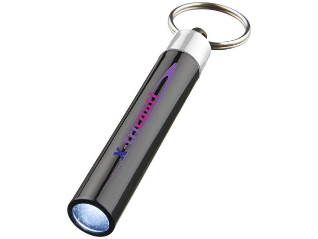 Брелок-фонарик Retro. Покрытие УФ, фонарик с одним диодом с нажимной кнопкой вкл/выкл. Металлическое колечко. Батарейки в комплекте. АБС пластик. Тампопечать (1 цвет (цветные изделия)) на данный товар осуществляется бесплатно. Оплачивается только настройка оборудования в размере 2300 рублей на весь тираж.