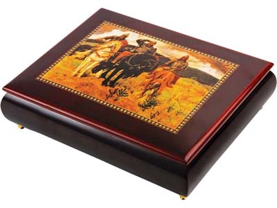 Типичная мужская шкатулка для личных аксессуаров. Сюда можно положить и часы, и запонки, и зажим для галстука…. Да мало ли у мужчин мелочей. К тому же шкатулка будет отличным сувениром для иностранного партнера. И еще один плюс – шкатулка музыкальная.