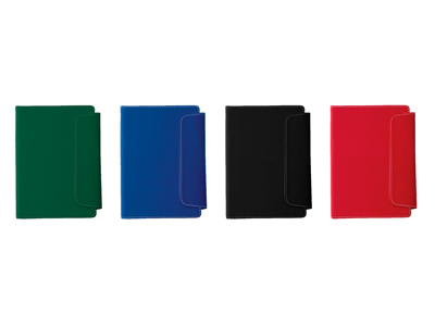 Блокнот формата А5 с магнитной застежкой. Включает пластиковую шариковую ручку-стилус и 80 листов белой линованной бумаги (70 г/м