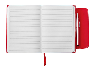 Блокнот формата А5 с магнитной застежкой. Включает пластиковую шариковую ручку-стилус и 80 листов белой линованной бумаги (70 г/м
