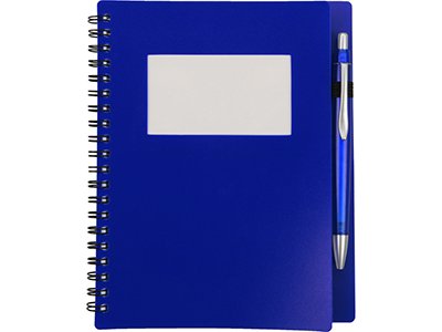 Блокнот «Контакт» в полипропиленовой обложке переплетен на пружине. В обложке блокнота предусмотрено окошко, в которое можно поместить визитную карточку или полиграфическую вставку. В комплекте с блокнотом идет ручка, которая вставляется в петельку сбоку.
