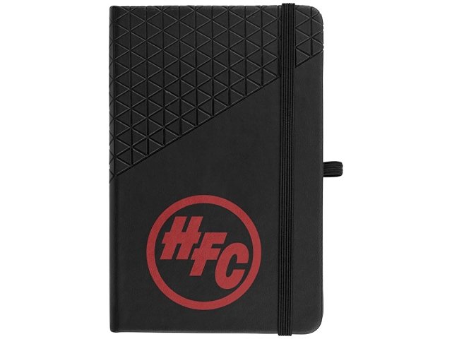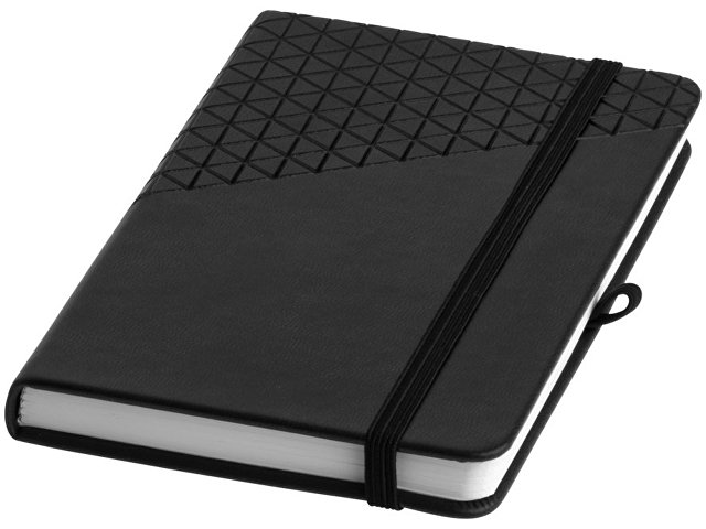 Блокнот А6 Theta. Блокнот А6 в приятной на ощупь обложке в стильном геометрическом дизайне. 80 листов линованной бумаги 80г/м2, закладка - лента, эластичная застежка и петелька для ручки. Тиснение (Блинт) на данный товар осуществляется бесплатно. Оплачивается только настройка оборудования в размере 3000 рублей на весь тираж.