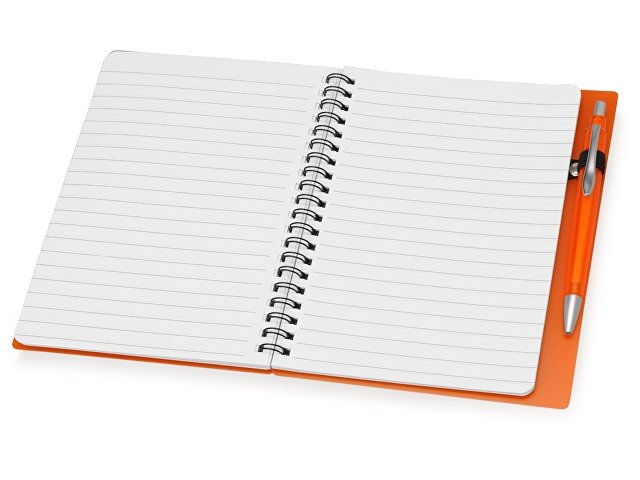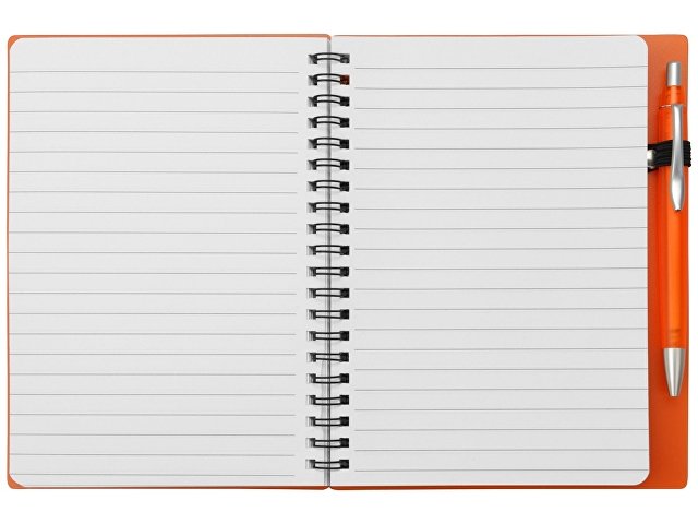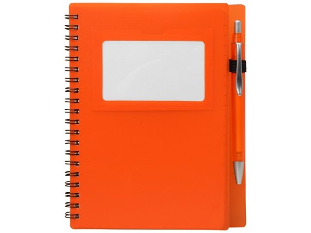 Блокнот «Контакт» в полипропиленовой обложке переплетен на пружине. В обложке блокнота предусмотрено окошко, в которое можно поместить визитную карточку или полиграфическую вставку. В комплекте с блокнотом идет ручка, которая вставляется в петельку сбоку.