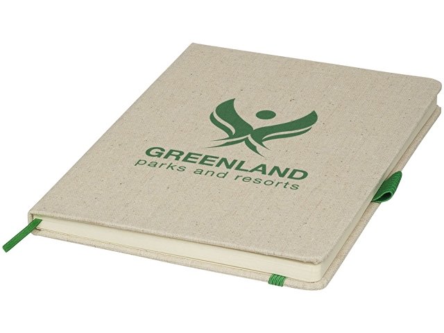 Блокнот Luna A5 Canvas. Блокнот А5 с холщевой обложкой, цветной резинкой-застежкой и петелькой для ручки. 80 листов линованной бумаги (70 г/м). Хлопковый холст. Термотрансфер (1 цвет (цветные изделия)) на данный товар осуществляется бесплатно. Оплачивается только настройка оборудования в размере 5400 рублей на весь тираж.