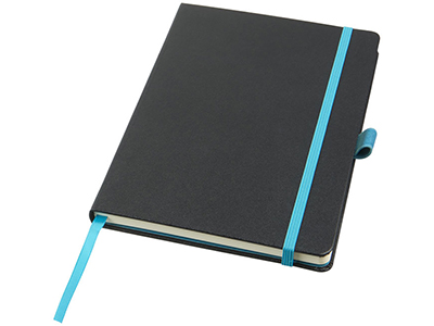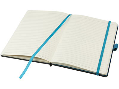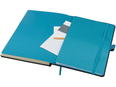 Цветной блокнот Melya. Стильный блокнот (размер А5 для ориентации) для креативных профессионалов, чтобы делать заметки, наброски или рисовать. Обложка различных цветов с эластичной застежкой в цвет и закладкой придает блокноту особый, свежий вид. 40 листов кремовой линованной бумаги (80 г/м2) и 40 листов чистой бумаги (80 г/м2) с кармашком для заметок и бумаг. Упакован в коробку-рукав. Бумага в виде кожзаменителя. Тиснение (Блинт) на данный товар осуществляется бесплатно. Оплачивается только настройка оборудования в размере 3000 рублей на весь тираж.