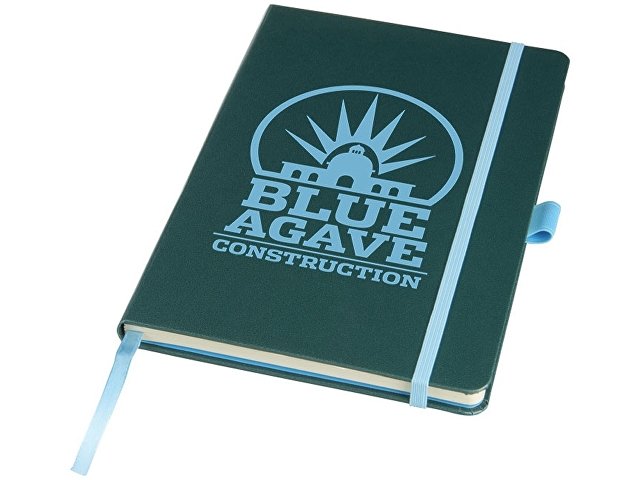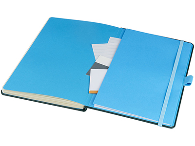 Цветной блокнот Melya. Стильный блокнот (размер А5 для ориентации) для креативных профессионалов, чтобы делать заметки, наброски или рисовать. Обложка различных цветов с эластичной застежкой в цвет и закладкой придает блокноту особый, свежий вид. 40 листов кремовой линованной бумаги (80 г/м2) и 40 листов чистой бумаги (80 г/м2) с кармашком для заметок и бумаг. Упакован в коробку-рукав. Бумага в виде кожзаменителя. Тиснение (Блинт) на данный товар осуществляется бесплатно. Оплачивается только настройка оборудования в размере 3000 рублей на весь тираж.