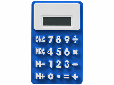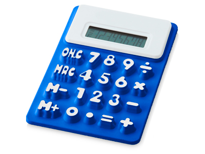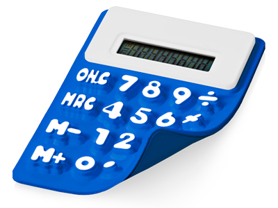 Гибкий калькулятор Splitz. Гибкий 8-разрядный калькулятор с белой отделкой, рельефными клавишами и функцией памяти. Батарейка включена в комплект. Силикон. Тампопечать (1 цвет (белые изделия)) на данный товар осуществляется бесплатно. Оплачивается только настройка оборудования в размере 2300 рублей на весь тираж.