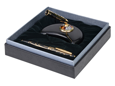 Отличный подарок для успешных мужчин или женщин. Набор включает в себя подставку с держателем и ручку-роллер. Выполненный в строгом стиле, набор прекрасно впишется в интерьер рабочего кабинета. Шильд спектрум (Шильд спектрум) на данный товар осуществляется бесплатно. Оплачивается только настройка оборудования в размере 500 рублей на весь тираж.
