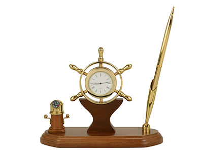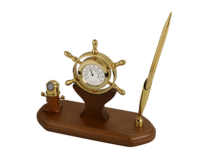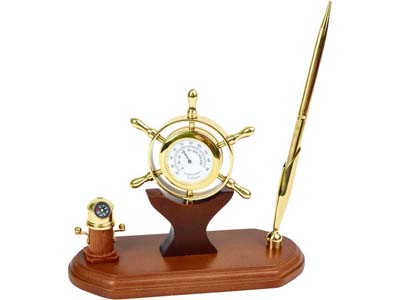 Настольный прибор «У руля»: часы, термометр, компас, ручка шариковая. Роскошный подарок для руководителей туристических агентств, а также капитану морского судна. Прибор позволит организовать место на рабочем столе и сделать акцент в кабинете. Шильд спектрум (Шильд спектрум) на данный товар осуществляется бесплатно. Оплачивается только настройка оборудования в размере 500 рублей на весь тираж.