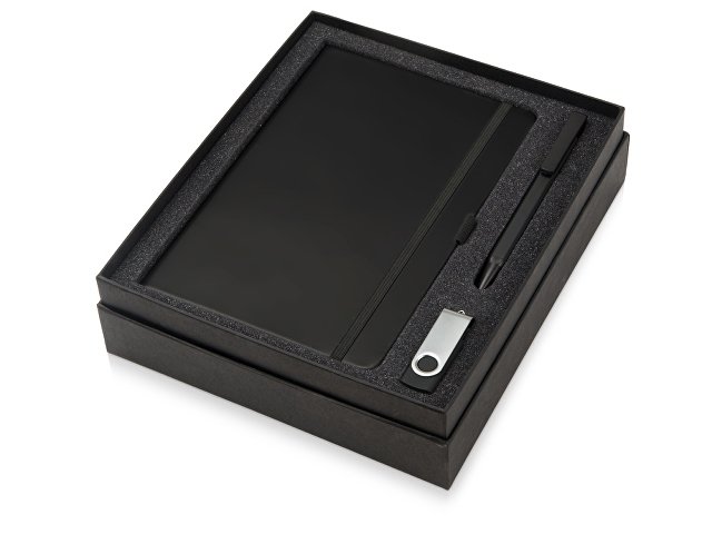 Рекламные Услуги >> Сувенирная продукция >> Каталог Оазис >> Офисные аксессуары >> Офисные наборы >> Подарочный набор «Q-edge» с флешкой, ручкой-подставкой и блокнотом А5