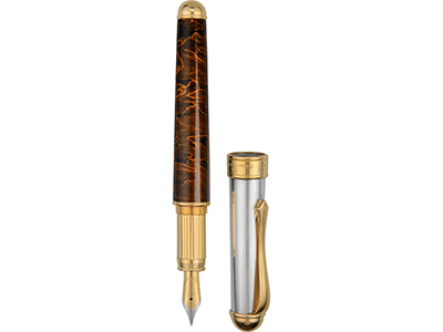 Роскошная перьевая ручка сделана из латуни, серебра и полированного панциря черепахи. Стильный дизайн и идеальное сочетание различных материалов делает эту ручку незаменимым помощником делового человека. Такая ручка в эффектной фирменной коробке будет прекрасным подарком для руководителя. Гравировка (Без чернения) на данный товар осуществляется бесплатно. Оплачивается только настройка оборудования в размере 500 рублей на весь тираж.
