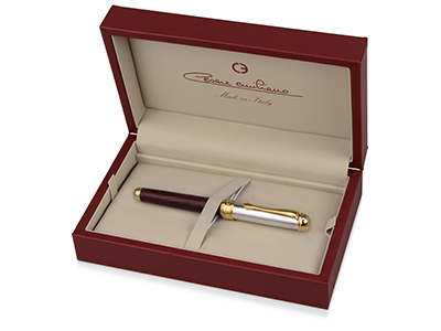 В дизайне ручек Cesare Emiliano органично сочетаются различные материалы. В этой модели, например, использовано серебро, латунь и натуральная кожа, которые вместе смотрятся необычно и элегантно. Эта ручка-роллер прекрасно лежит в руке, поэтому ей очень удобно писать. Она может стать прекрасным подарком как для женщины, так и для мужчины. Гравировка (Без чернения) на данный товар осуществляется бесплатно. Оплачивается только настройка оборудования в размере 500 рублей на весь тираж.