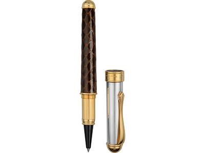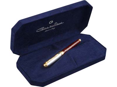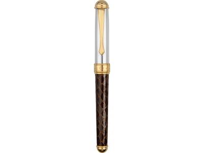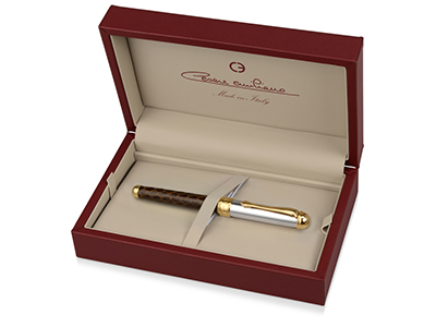 В дизайне ручек Cesare Emiliano прекрасно сочетаются различные материалы. В этой модели, например, использовано серебро, латунь и натуральная кожа, которые вместе смотрятся дорого и элегантно. Эта ручка-роллер прекрасно лежит в руке, и ей очень удобно писать. Она может стать прекрасным подарком для человека, который знает толк в красивых вещах. Гравировка (Без чернения) на данный товар осуществляется бесплатно. Оплачивается только настройка оборудования в размере 500 рублей на весь тираж.