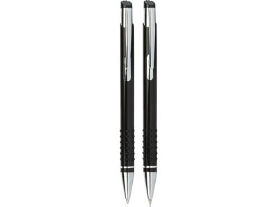 Набор письменных принадлежностей, состоящий из шариковой ручки с нажимным механизмом и механического карандаша, предлагается в компактном пластиковом футляре. На ручку, карандаш и футляр можно нанести логотип и подарить в качестве сувенира или небольшого презента клиенту компании. Гравировка (Без чернения) на данный товар осуществляется бесплатно. Оплачивается только настройка оборудования в размере 500 рублей на весь тираж.