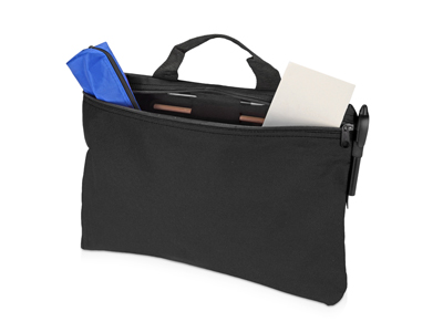 Сумка для конференций Orlando. Сумка для конференций с ручкой, застежкой на молнии и держателями для ручек снаружи и внутри сумки. Подходит для документов формата А4. Полиэстер 600D. Трафаретная печать (1 цвет (лучшая цена!) *) на данный товар осуществляется бесплатно. Оплачивается только настройка оборудования в размере 1500 рублей на весь тираж.