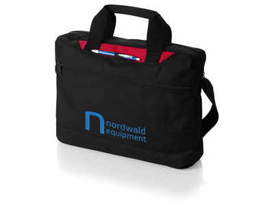 Удобная сумка для деловых принадлежностей с цветной вставкой и возможностями индивидуализации. Большое основное отделение на молнии, формат А4. Передний карман на молнии, сверху – оригинальная петелька для ручки. Регулируемый плечевой ремень для удобства переноски. Термотрансфер (1 цвет (цветные изделия)) на данный товар осуществляется бесплатно. Оплачивается только настройка оборудования в размере 5400 рублей на весь тираж.