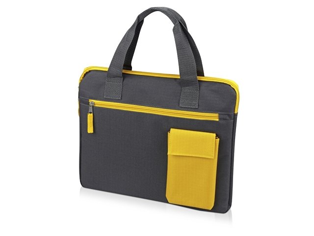 Конференц-сумка "Session" с тремя отделениями - основное отделение для документов, отделение на молнии и контрастный карман для ручек и гаджетов Термотрансфер (1 цвет (цветные изделия)) на данный товар осуществляется бесплатно. Оплачивается только настройка оборудования в размере 5400 рублей на весь тираж.