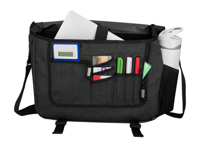 Сумка SLY для ноутбука 13". Эксклюзивная сумка выполнена в двух тонах с отделением для ноутбука 13" на флисовой подкладке. Большое основное отделение для книг папок и файлов. Организационная панель под передним клапаном. Внешний карман на молнии для мелочей и регулируемый ремень на плечо. Полиэстер 600D. Термотрансфер (1 цвет (цветные изделия)) на данный товар осуществляется бесплатно. Оплачивается только настройка оборудования в размере 5400 рублей на весь тираж.