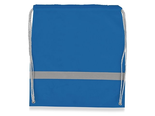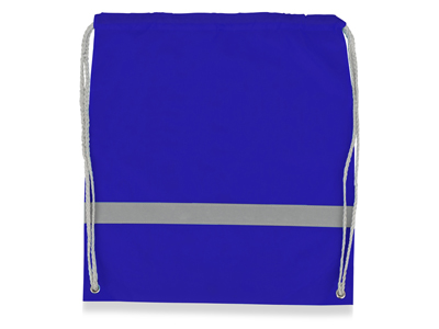 Рюкзак-мешок со светоотражающей полосой и серыми шнурками. Трафаретная печать (1 цвет (цветные изделия)) на данный товар осуществляется бесплатно. Оплачивается только настройка оборудования в размере 3800 рублей на весь тираж.
