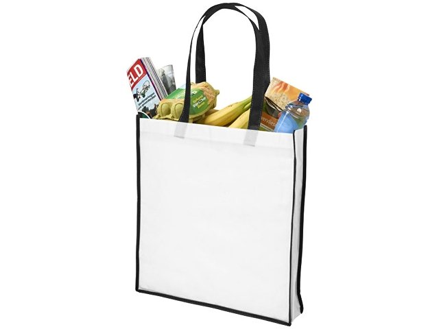 Большая контрастная нетканая сумка-тоут для покупок. Сумка для покупок из белого нетканого полипропилена с цветными ручками и окантовкой. Новый яркий дизайн. Большая и удобная версия сумки Contrast Mini Shopper. Нетканый полипропилен.