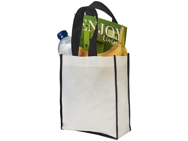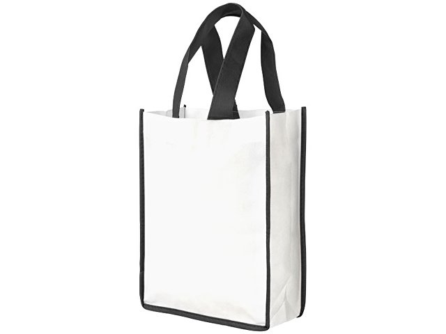 Небольшая контрастная нетканая сумка-тоут для покупок. Сумка для покупок из белого нетканого полипропилена с цветными ручками и окантовкой. Новый яркий дизайн. Компактная и удобная версия сумки Contrast Shopper. Нетканый полипропилен. Трафаретная печать (1 цвет (белые изделия)) на данный товар осуществляется бесплатно. Оплачивается только настройка оборудования в размере 2600 рублей на весь тираж.