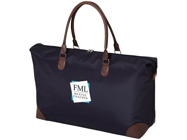 Сумка Adalie. Дорожная сумка с большим основным отделением на молнии и кнопками с обоих сторон. Темно-коричневые ручки из ПВХ придают сумке классический вид. Уплотненное дно сохранит вашу одежду и другие вещи. Внизу пять серебристых наконечников для устойчивости. Микрофибра и ПВХ. Термотрансфер (1 цвет (цветные изделия)) на данный товар осуществляется бесплатно. Оплачивается только настройка оборудования в размере 5400 рублей на весь тираж.