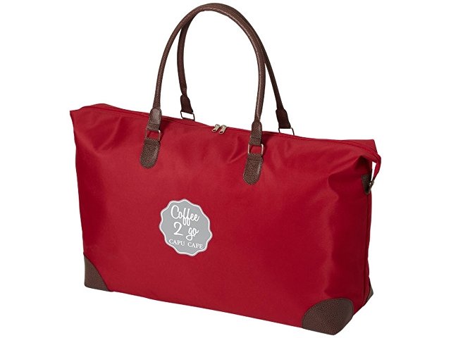 Сумка Adalie. Дорожная сумка с большим основным отделением на молнии и кнопками с обоих сторон. Темно-коричневые ручки из ПВХ придают сумке классический вид. Уплотненное дно сохранит вашу одежду и другие вещи. Внизу пять серебристых наконечников для устойчивости. Микрофибра и ПВХ. Термотрансфер (1 цвет (цветные изделия)) на данный товар осуществляется бесплатно. Оплачивается только настройка оборудования в размере 5400 рублей на весь тираж.