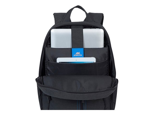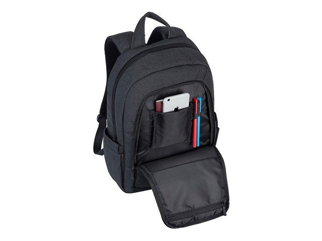 • Основное отделение для ноутбука с вертикальной загрузкой, имеет мягкие стенки и ремень для надежной фиксации ноутбука до 15.6".