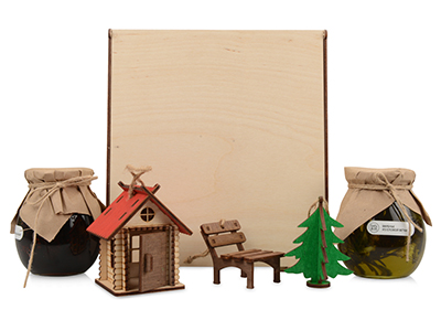 | Комплектность: | варенье из ели и мяты 230мл, варенье из сосновых шишек 230мл, подвеска "Избушка", подвеска "Ёлка", подвеска "Скамейка" |