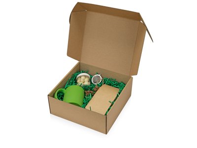 Набор состоит из кружки, ягод малины в йогуртовой глазури, чёрного чая, ситечка для заварки. Набор упакован в крафтовую картонную коробку с бумажным наполнителем. Тампопечать (1 цвет (белые изделия)) на данный товар осуществляется бесплатно. Оплачивается только настройка оборудования в размере 2300 рублей на весь тираж.