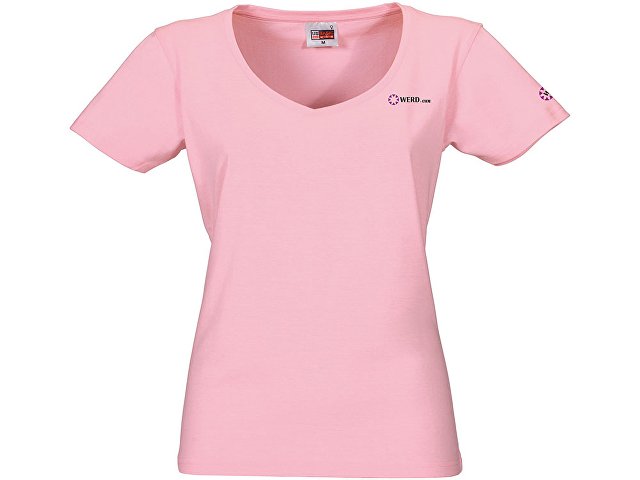 Женская футболка из натурального хлопка с элегантным V-образным вырезом. Материал отлично подходит для нанесения рекламной информации. Натуральная ткань не вызывает раздражения кожи. Трафаретная печать (1 цвет (цветные изделия)) на данный товар осуществляется бесплатно. Оплачивается только настройка оборудования в размере 3800 рублей на весь тираж.