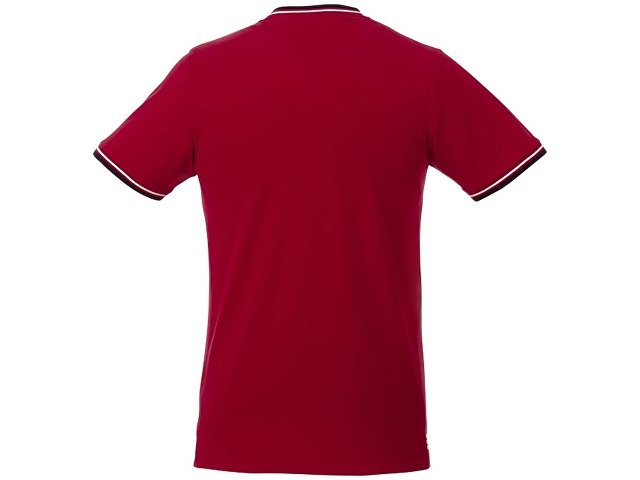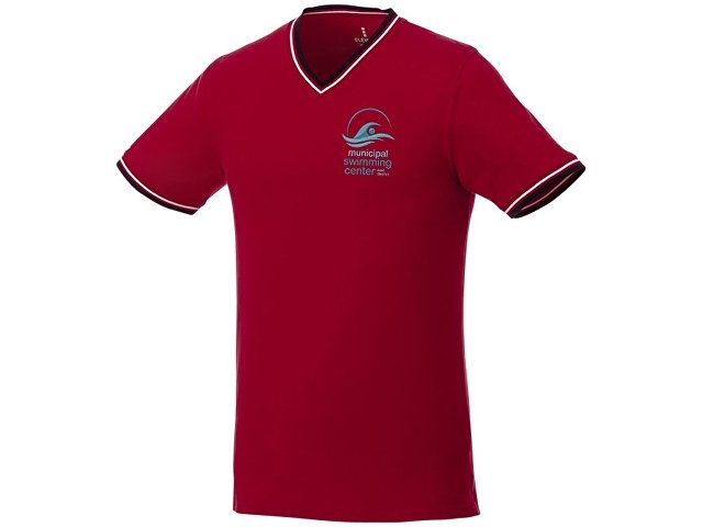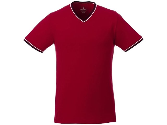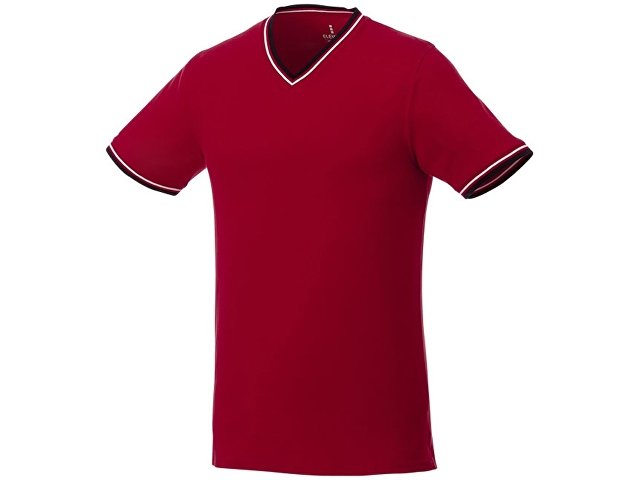 Мужская футболка Elbert с коротким рукавом. Воротник гладкой вязкой в рубчик. Манжеты гладкой вязкой в рубчик. Контрастные окантовки.V-образная горловина. Двойная строчка на воротнике и внизу изделия. Комфортный ярлык-трансфер на изделии. Трикотажное пике, 100% хлопок. 180 г/м