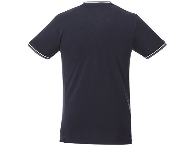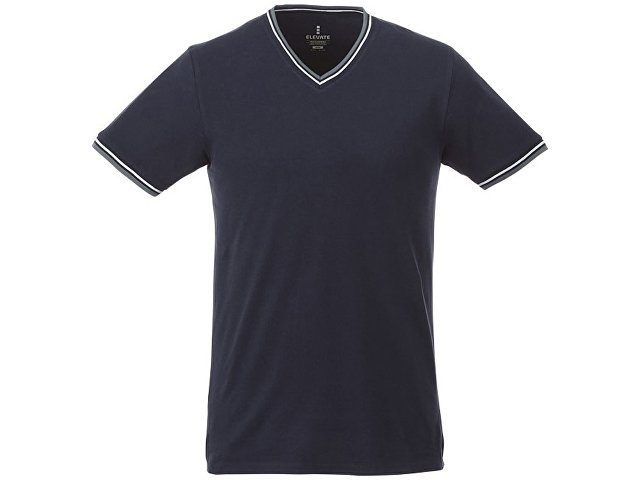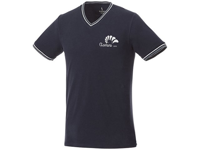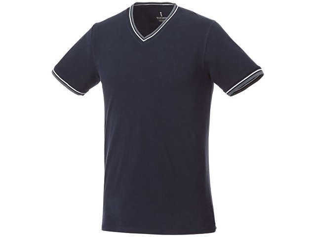 Мужская футболка Elbert с коротким рукавом. Воротник гладкой вязкой в рубчик. Манжеты гладкой вязкой в рубчик. Контрастные окантовки.V-образная горловина. Двойная строчка на воротнике и внизу изделия. Комфортный ярлык-трансфер на изделии. Трикотажное пике, 100% хлопок. 180 г/м