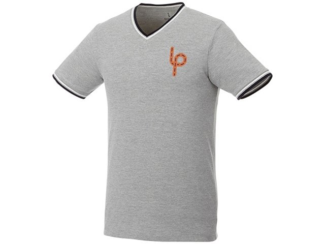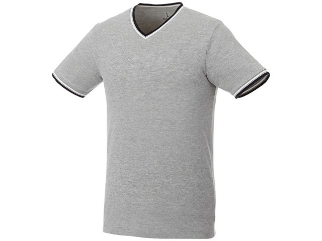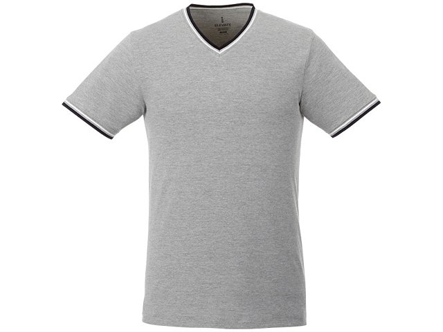 Мужская футболка Elbert с коротким рукавом. Воротник гладкой вязкой в рубчик. Манжеты гладкой вязкой в рубчик. Контрастные окантовки.V-образная горловина. Двойная строчка на воротнике и внизу изделия. Комфортный ярлык-трансфер на изделии. Трикотажное пике, 90% хлопок, 10% вискоза. 180 г/м