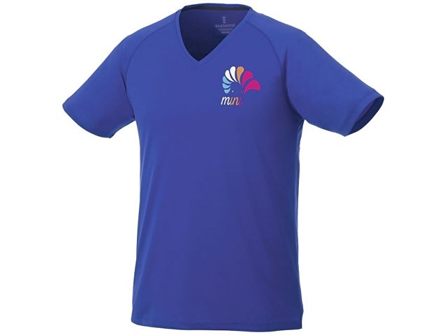 Модная мужская футболка Amery с коротким рукавом и V-образным вырезом. Воротник из ткани изделия.V-образная горловина. Рукава реглан. Тонкий шов. Атласный кант по линии горловины. Отражающие детали. Комфортный ярлык-трансфер на изделии. Сетчатый материал, 100% полиэстер с дышащей поверхностью и отделкой Cool Fit. 145 г/м