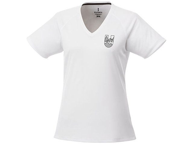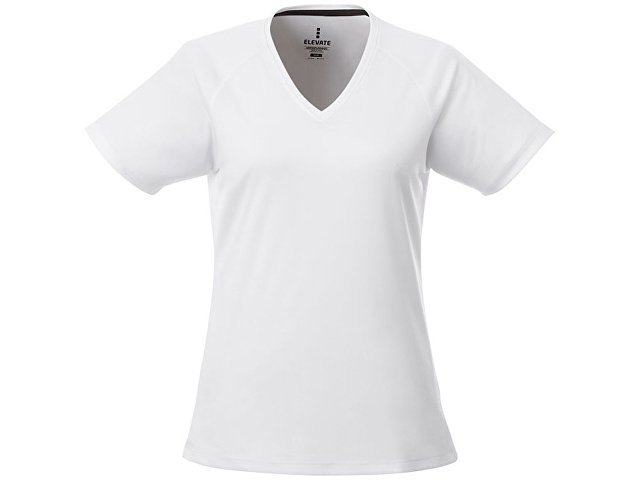 Модная женская футболка Amery с коротким рукавом и V-образным вырезом. Воротник из ткани изделия.V-образная горловина. Рукава реглан. Тонкий шов. Атласный кант по линии горловины. Отражающие детали. Комфортный ярлык-трансфер на изделии. Сетчатый материал, 100% полиэстер с дышащей поверхностью и отделкой Cool Fit. 145 г/м