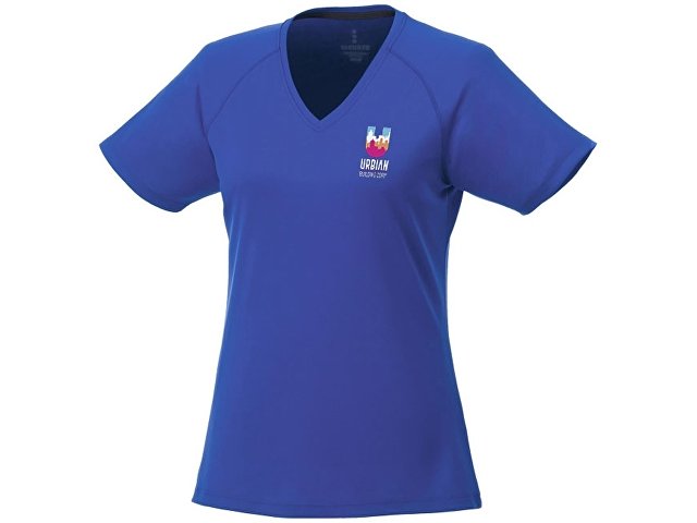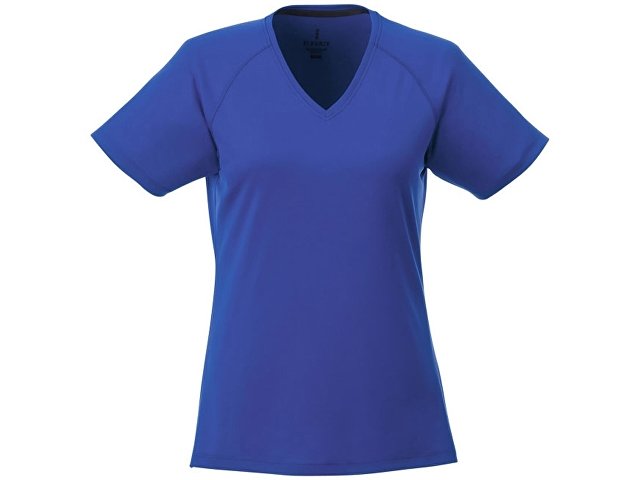 Модная женская футболка Amery с коротким рукавом и V-образным вырезом. Воротник из ткани изделия.V-образная горловина. Рукава реглан. Тонкий шов. Атласный кант по линии горловины. Отражающие детали. Комфортный ярлык-трансфер на изделии. Сетчатый материал, 100% полиэстер с дышащей поверхностью и отделкой Cool Fit. 145 г/м